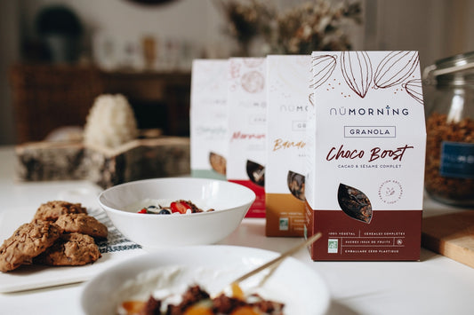 La mission de nüMorning? Concevoir des recettes créatives dédiées au petit-déjeuner, mises au point avec exigence et gourmandise depuis notre atelier lyonnais. Chez nüMorning, transparence rime avec simplicité, grâce à des listes d'ingrédients courtes et compréhensibles ! Membre du 1% for the planet la marque œuvre pour une alimentation plus durable : recettes 100% bio & végétales, emballages 100% recyclables...